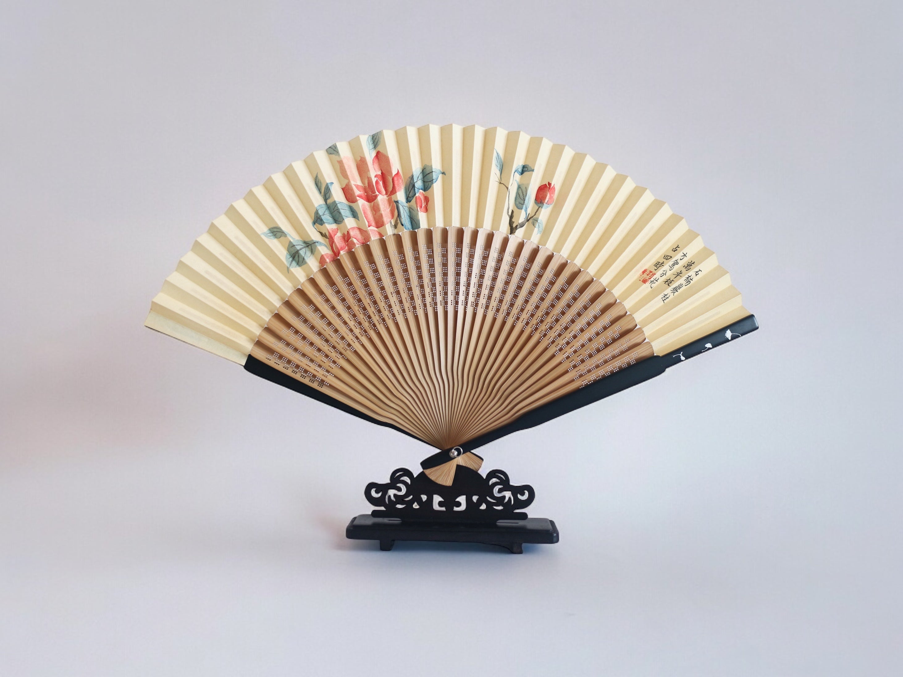 Hand-Painted Silk Folding Fan - Camellia