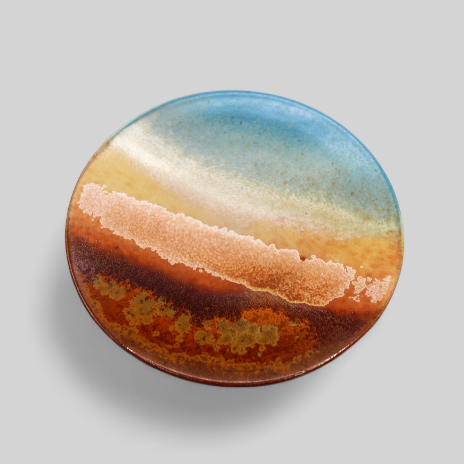 Experience traditional Chinese craftsmanship with the "Sunset Shore" coffee cup set. The cup’s soft blend of blue, beige, and warm brown resembles a sunset over the shore, with unique glaze variations giving each piece a calming feel.