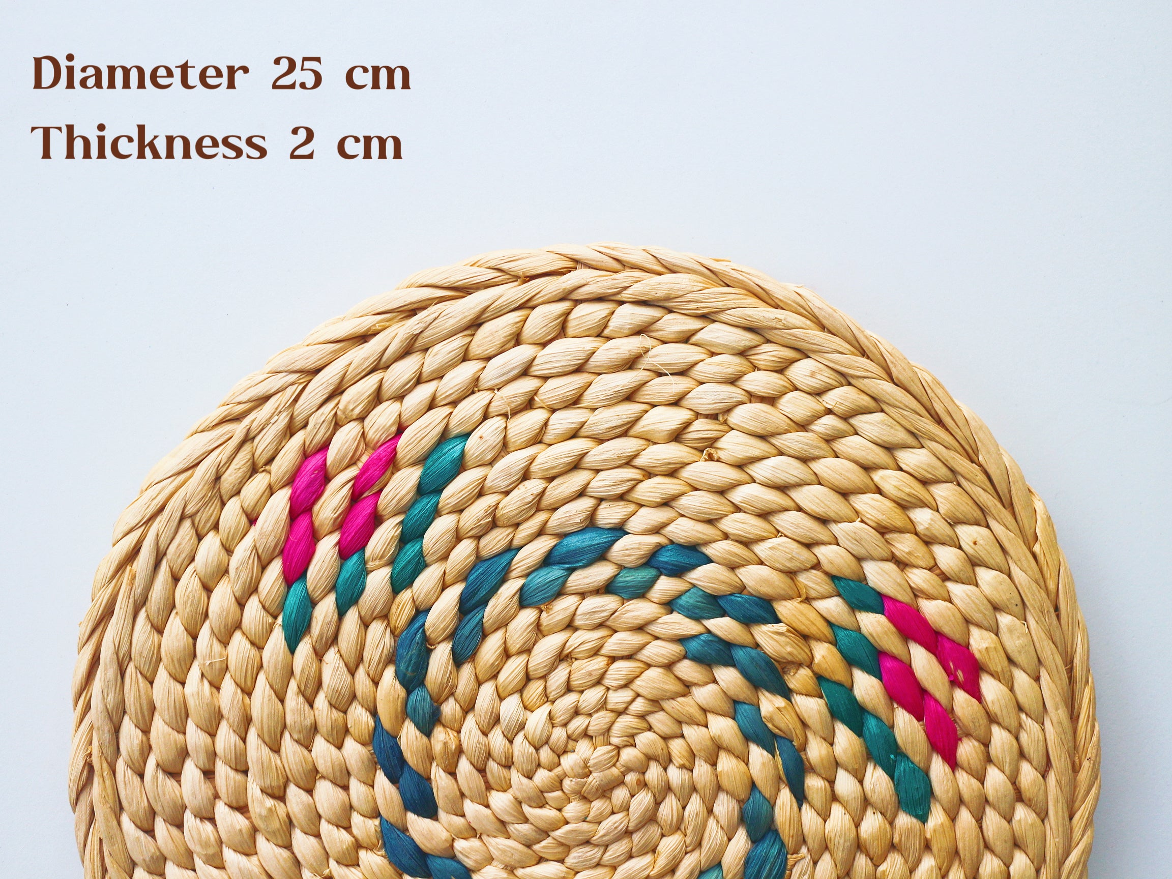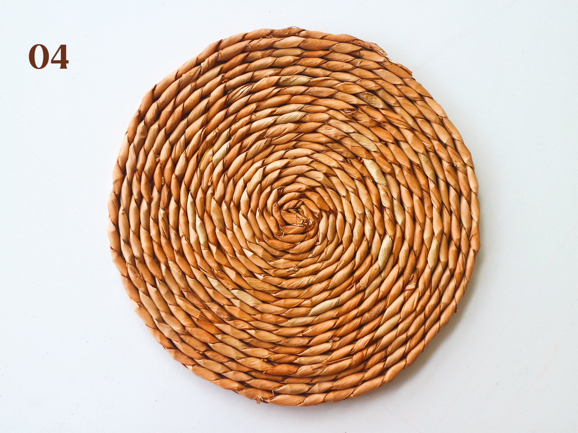 Considering the varying textures and widths of the cattail's different parts, our craftsmen utilise diverse plaiting techniques to endow the potholders with intricate patterns and textures.
