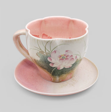 Inspired by traditional Chinese art, this hand-painted ceramic cup set features a delicate blooming lotus, symbolising purity and tranquility. The soft pink and ivory gradient glaze enhances its serene beauty, while the scalloped rim adds an elegant, petal-like touch.