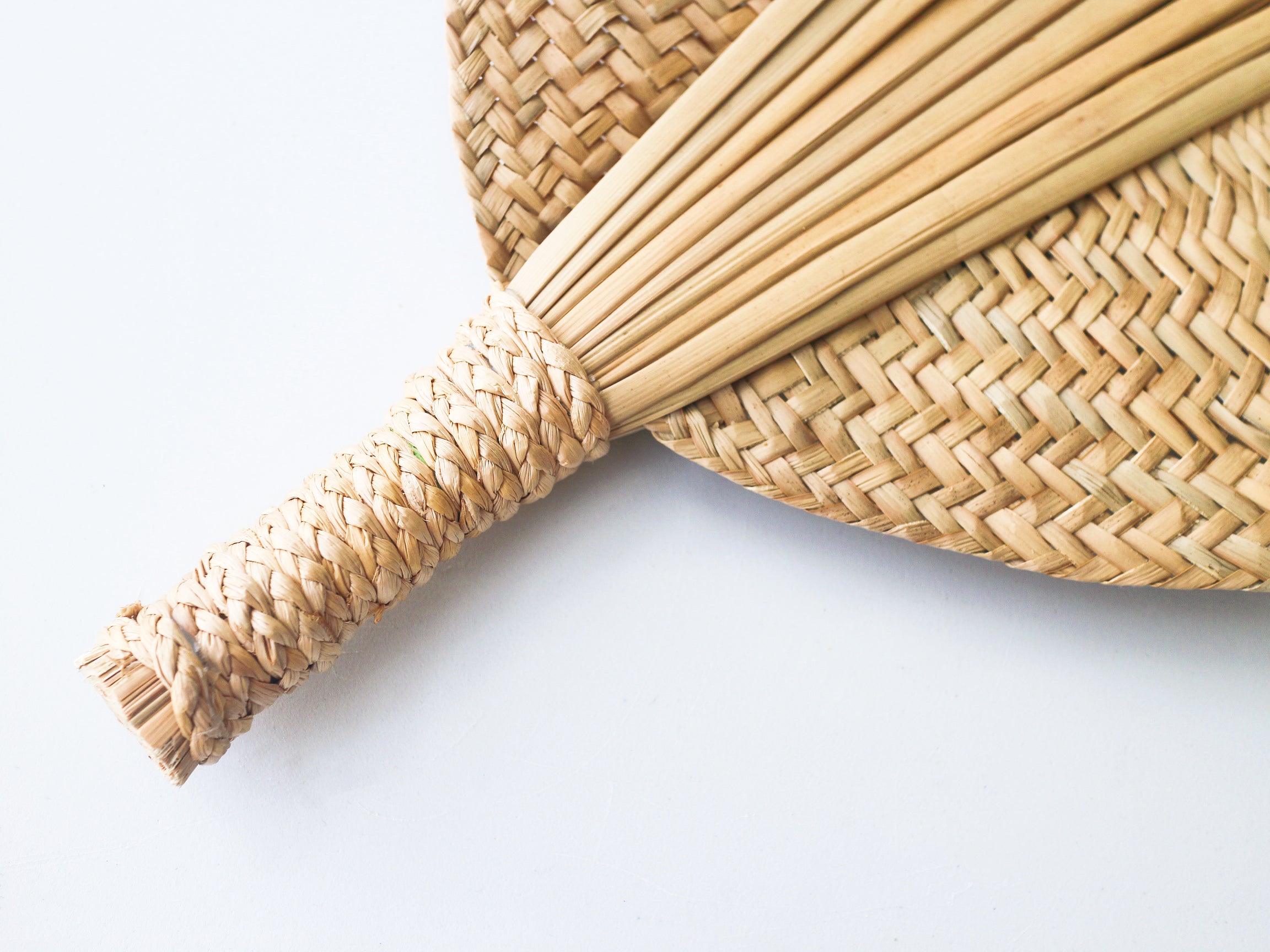Our Hand-Plaited Straw Fan, crafted by artisans, combines traditional techniques with cattails for a cooling breeze. Lightweight, durable, and eco-friendly, its intricate design enhances airflow, making it perfect for summer.