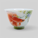 Hand-Painted Porcelain Tea Cup – Goldfish & Wisteria