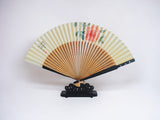 The fan is packaged in a brocade box and includes a wooden fan stand for display. They are perfect as collectible gifts.