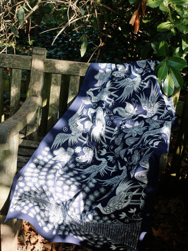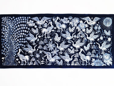 This exquisite batik artwork was lovingly crafted by a Miao artisan from Guizhou. It portrays a magnificent scene of numerous cranes gathering together, radiating joy and serenity.