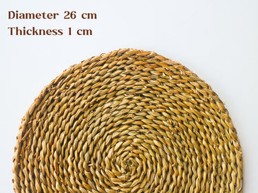 Considering the varying textures and widths of the cattail's different parts, our craftsmen utilise diverse plaiting techniques to endow the potholders with intricate patterns and textures.
