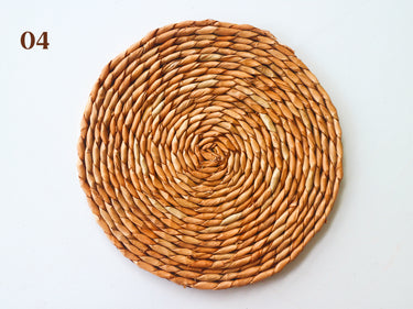 This series of potholders is crafted from natural cattail, hand-plaited by skilled artisans from Shandong.