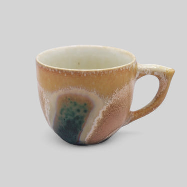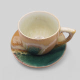 Immerse yourself in the beauty of traditional Chinese craftsmanship with the "Tidal Sands" coffee cup set, handcrafted by skilled artisans in Jingdezhen. The cup features a mesmerizing blend of sandy golden tones and deep green waves, resembling the sight of ocean waves washing over the beach. The natural variations in the glaze give each piece a unique character.