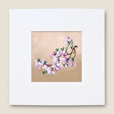 This elegant piece, "Golden Magnolia Blossoms," showcases graceful magnolia flowers in soft pink and white hues, symbolising purity, nobility, and perseverance.